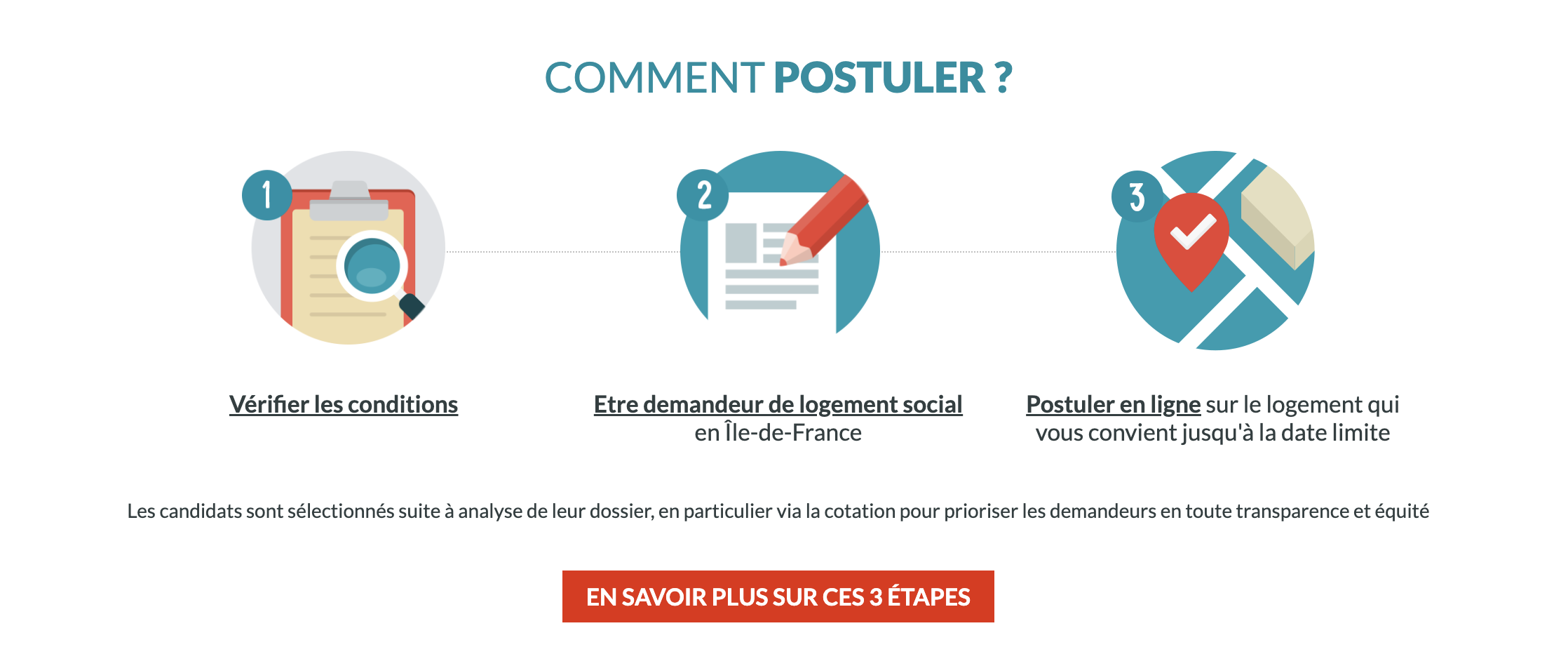 Pour chaque logement, une date limite est fixée. Lorsque vous remarquez des annonces immobilières qui vous intéressent, vous pouvez immédiatement postuler via votre compte. Les candidatures restent ouvertes sur 9 jours successifs et sont clôturées le mercredi ou le samedi suivant la date de parution de l’annonce sur le site. Suivant la cotation, trois candidats seront présélectionnés. L’attente de l’attribution du logement dure généralement entre 1-3 mois. Un courriel vous sera envoyé si vous faites partie des candidats sélectionnés. A noter qu’il n’est pas possible de postuler pour deux logements différents en même temps.
